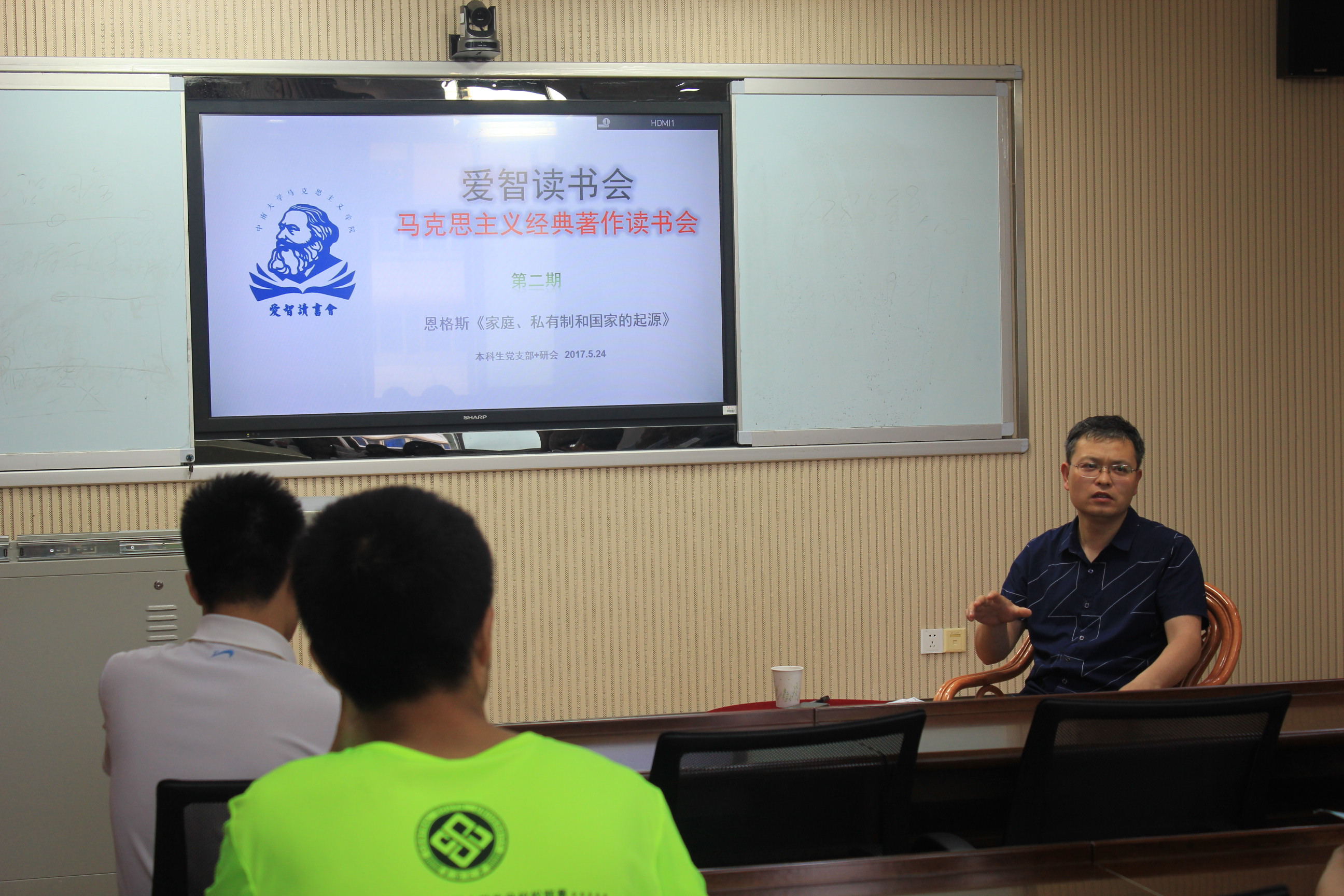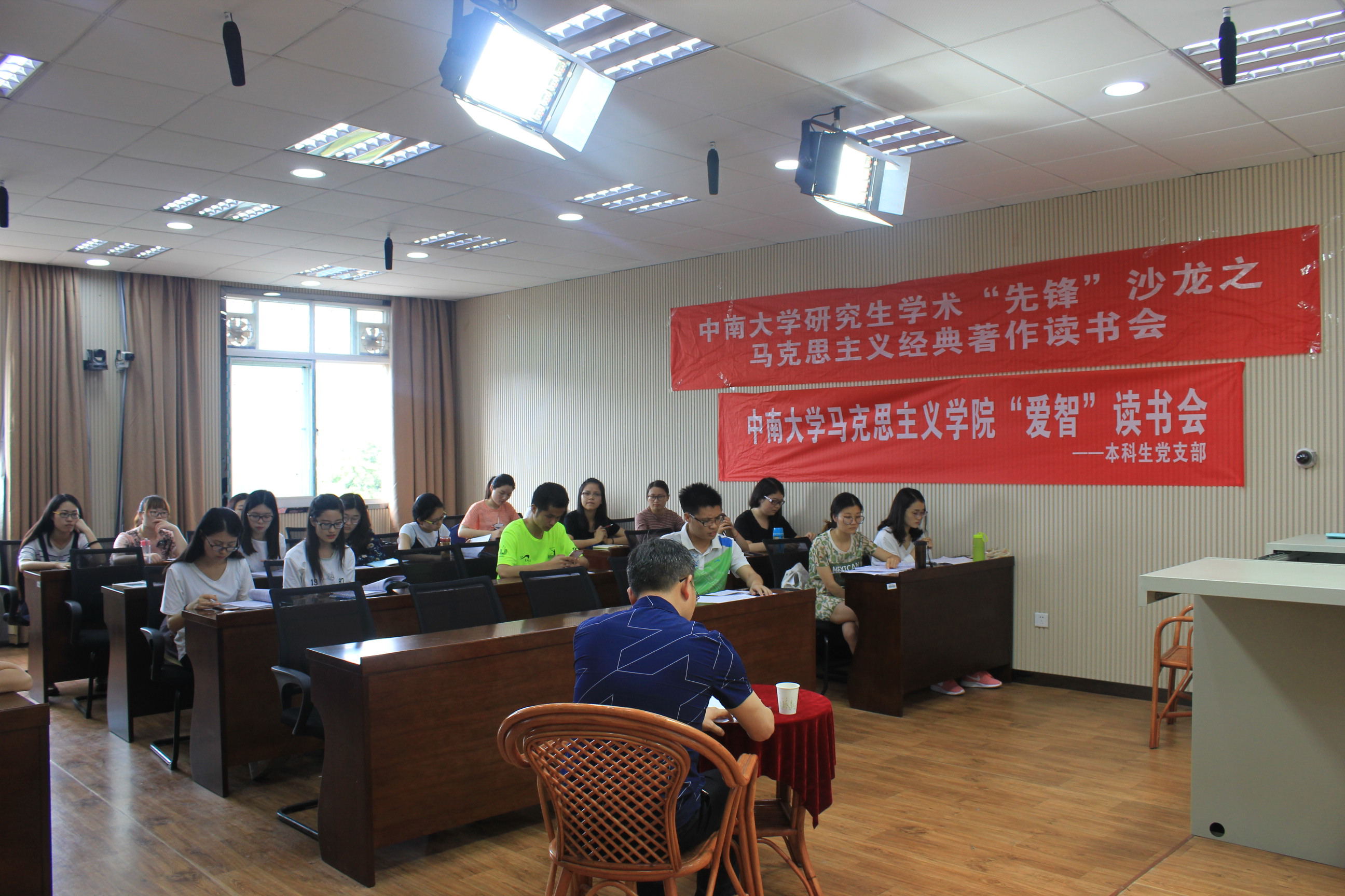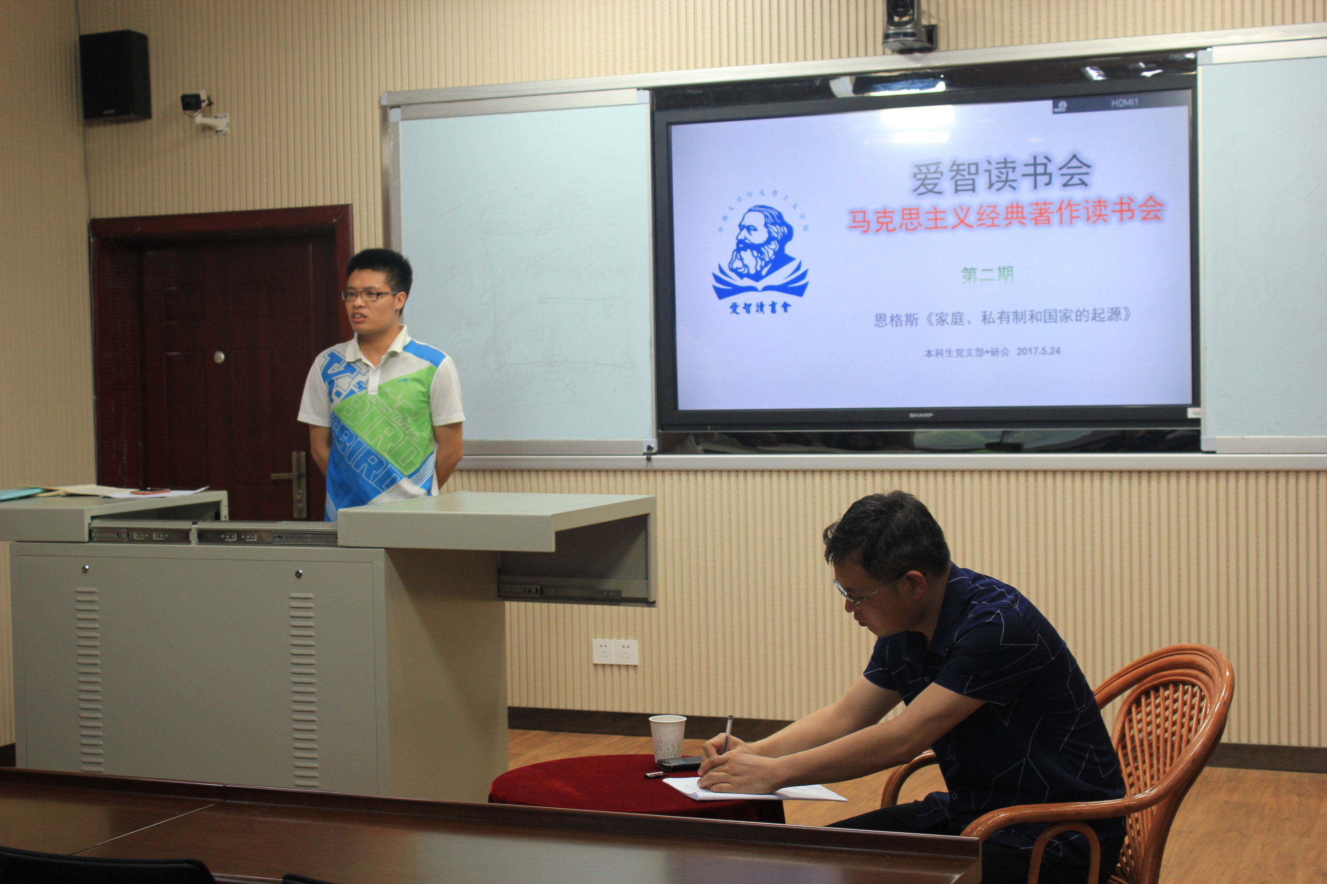 5月24日下午4点,公司研究生学术“先锋”沙龙和本科生党支部“爱智”读书会联合举办第二期马克思主义经典著作分享交流会,交流会在三教608室成功举办。此次读书会邀请到学院王浩斌老师、胡栋材老师、秘金雷老师,2016级全体研究生和本科生支部全体党员参加了读书会。