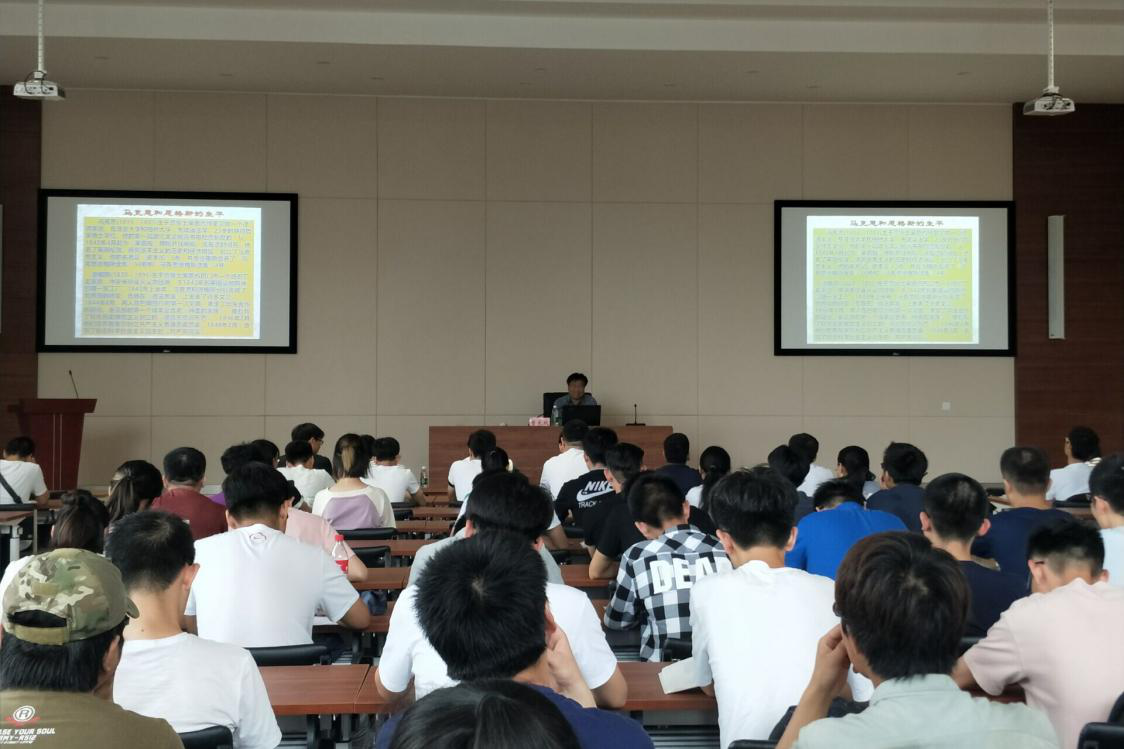 在向同学们说明了纪念马克思诞辰和学习马克思主义思想的重大意义后,曾长秋教授从马克思的生平及评价、马克思的主要著作和马克思主义广泛传播三个方面展开了详尽的论述,并系统的讲解了马克思主义科学体系的结构和其思想的主要内容。在谈到《共产党宣言》的问世及影响时,曾长秋教授表示这是一部划时代意义的不朽巨著,它第一次全面、系统地阐述了马克思主义的原理,所提出的“全世界无产者,团结起来”的战斗口号,为工人运动树立了一面旗帜,照亮了世界无产阶级争取解放斗争的前进道路。在提到现今世界马克思主义思想理论的影响时,曾长秋教授从宏观角度以真实数据向同学们介绍了马克思主义传播的广泛性和影响的深刻性——纵观马克思主义传播近两个世纪的历史,19世纪是它的准备时期,20世纪是它的发展时期。马克思主义的传播者是共产党人,今天,在世界上的101个国家中,有142个共产党,党员人数逾9000万。其中,执政的共产党有8个部分执政的共产党17个。曾长秋教授谈论道:“从这些数据中可以得出在世界上各种政治力量中,共产党仍是人数最多的一支。如今我们坚持对马克思主义的学习与传承对国家和世界的发展具有重大意义。”