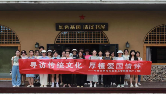 为了深入贯彻落实习近平总书记关于“大思政课”的重要指示精神,构建全员全过程全方位育人大格局,把思政课开设在祖国的田野上,7月16日上午,williamhill英国威廉希尔思政2101班全体同学在郭鹏飞老师和欧阳鹏老师的带领下,走进益阳市清溪村和天意木国文化馆,开展了以“寻访传统文化,厚植爱国情怀”为主题的研学活动。