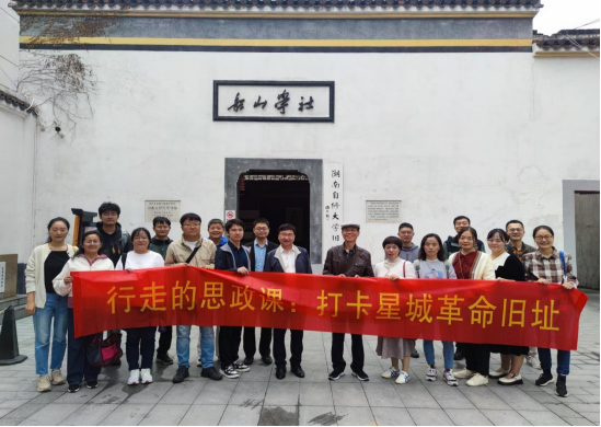 为更好地开展中国近现代史纲要课教学,进一步加强纲要课程的学术研究和实践探索,11月8日,一场别开生面的集体备课——打卡星城革命旧址的活动如期进行。纲要教研中心20余位教师参加了此次“都市行走”的教学实践活动,督导专家荣复康老师也参加了此次活动。本次活动以“革命”为主线,力图发掘在烽火连天的革命岁月中留存下来的历史遗迹,回望历史,感悟历史,从革命史中汲取前行的力量。